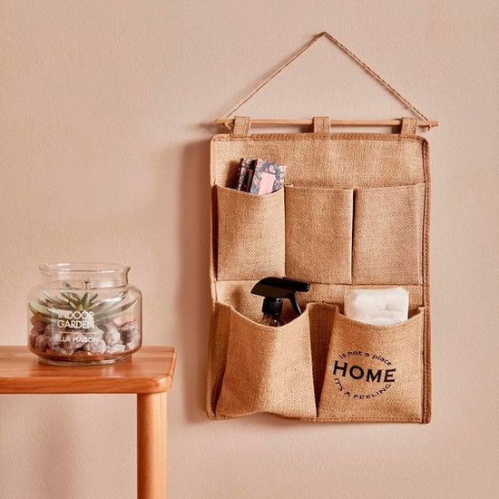 It is made from 100% natural jute fibers and is available in different sizes and colors.