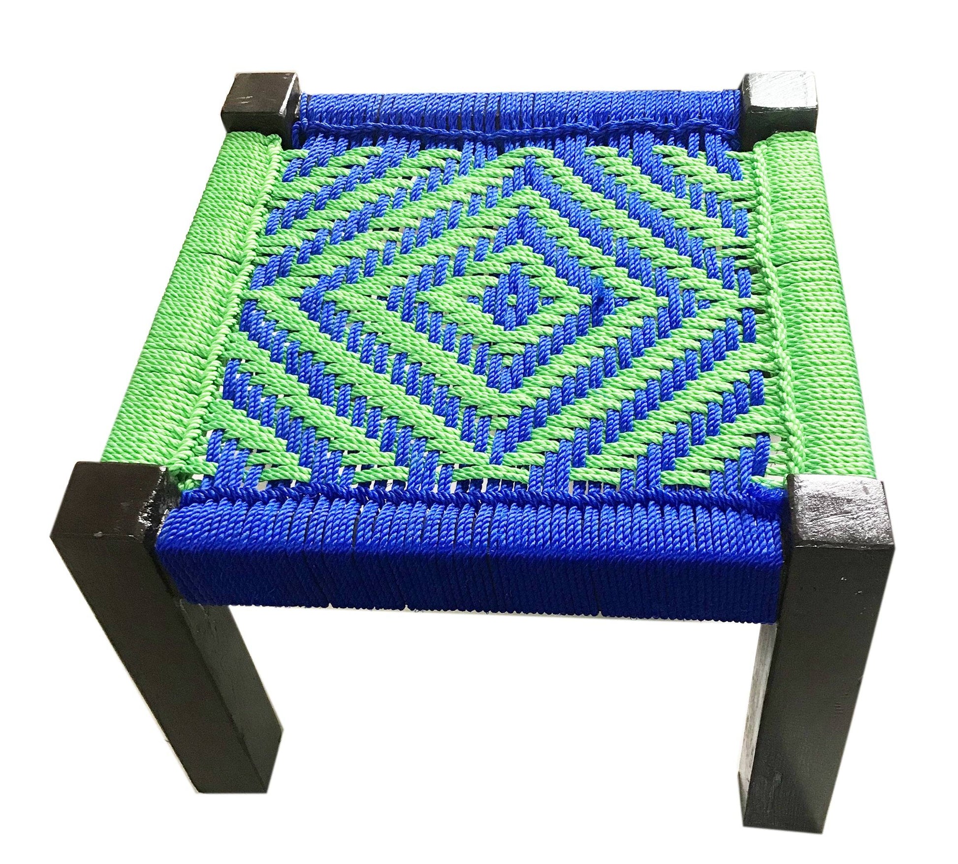 Wooden Weaving Pidha for Sitting With Green & Blue