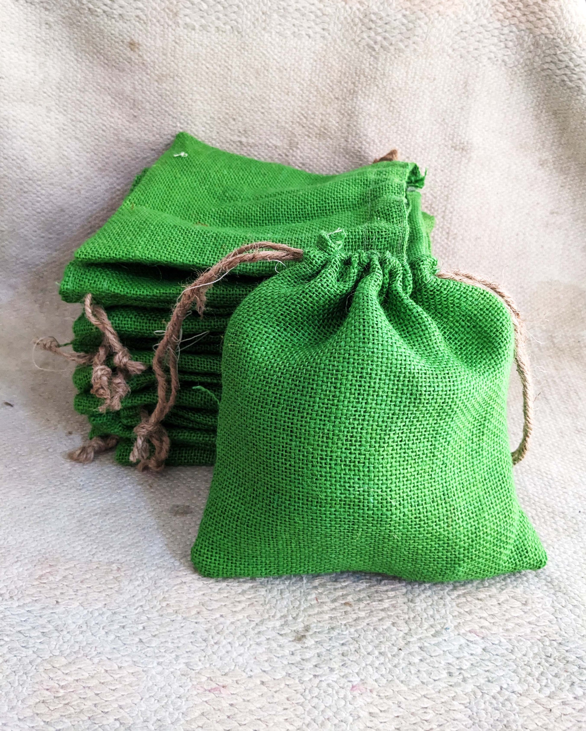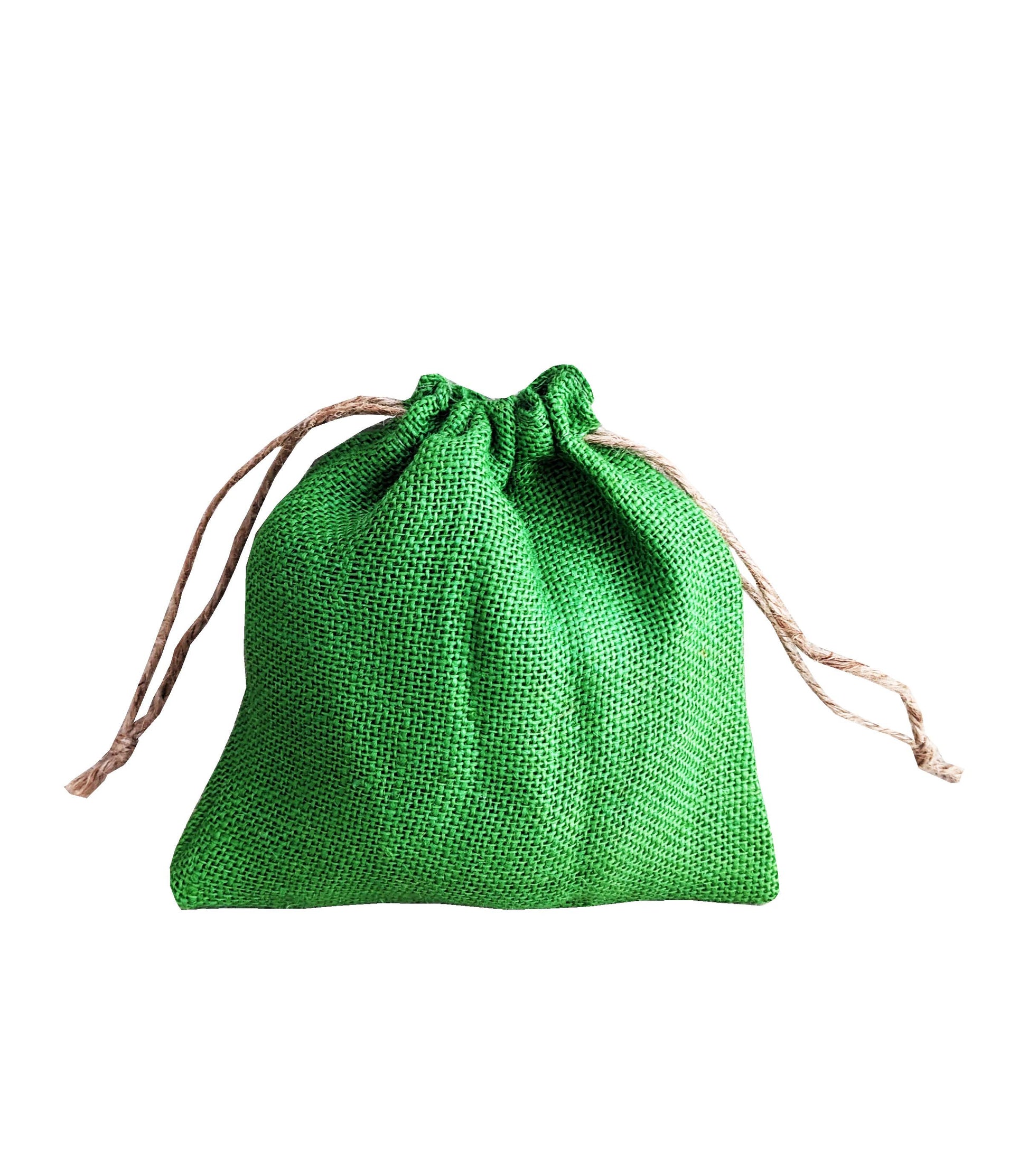 Handmakes Natural Pure Green Jute Gift Potli Bags 7X8 Gift Pouches