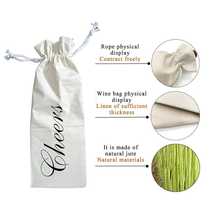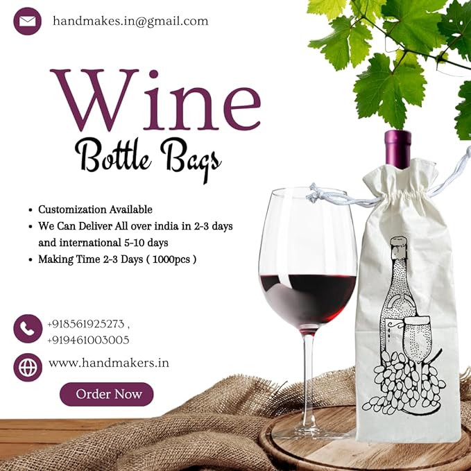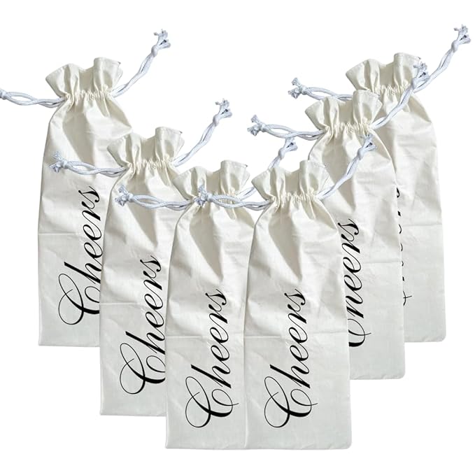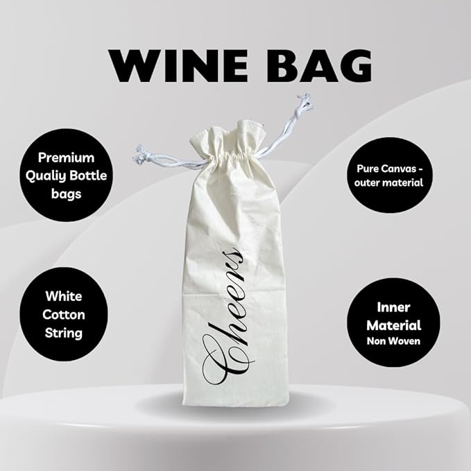Handmakers Natural Pure White Wine Bottle Bags with Cheers Print Wine Bags Pack of 6