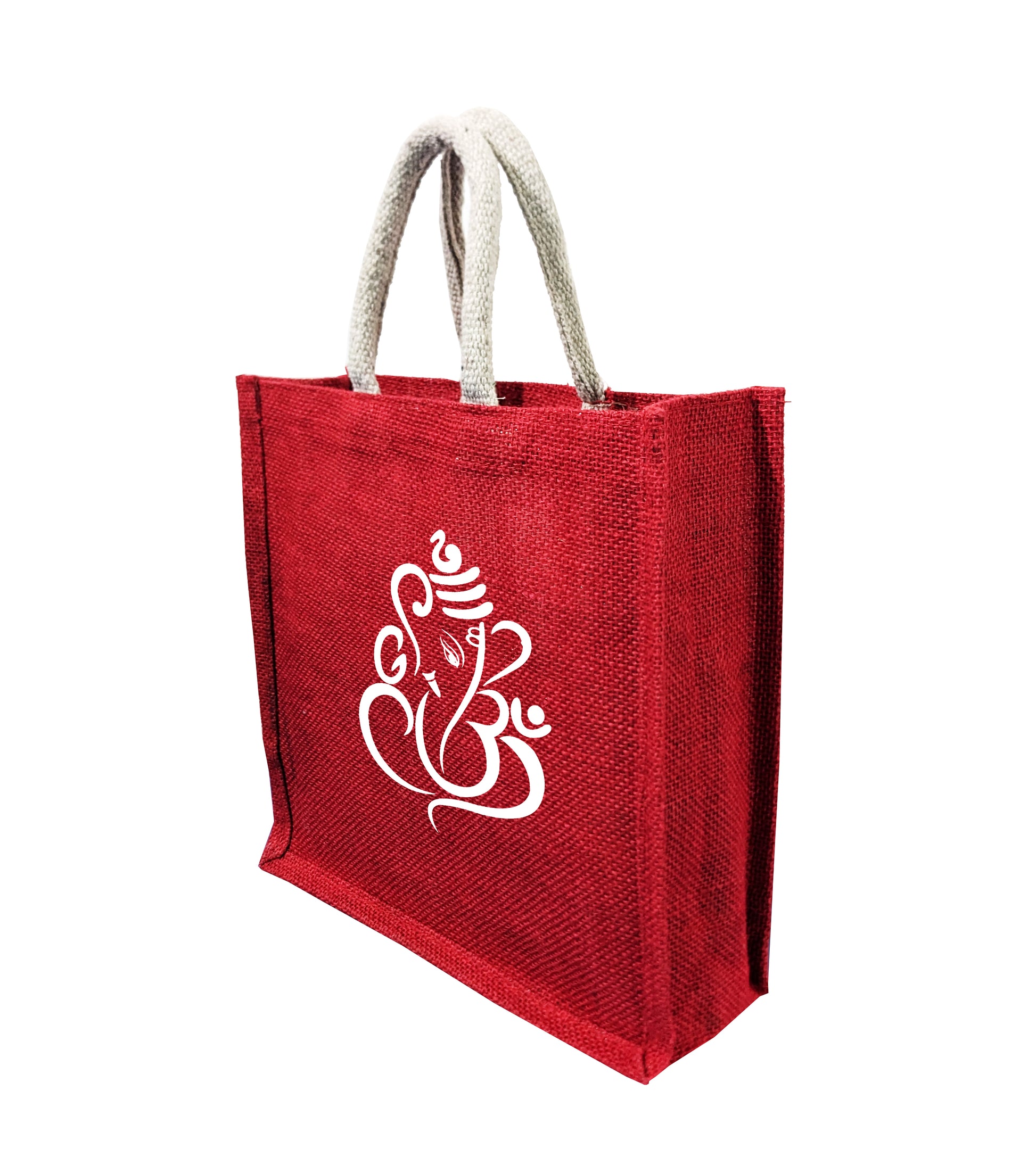 Handmakers Red Jute Ganesh Print Bag | Eco Return Gift Bags