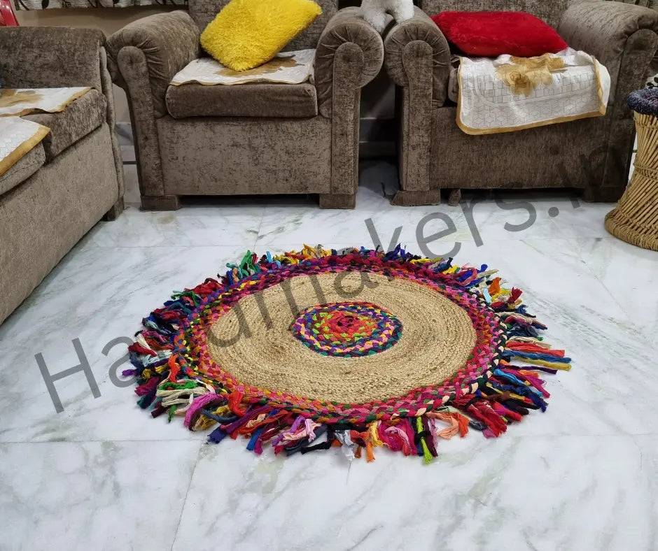 Handmaker Jute and cotton are rug with cutting strips for living room