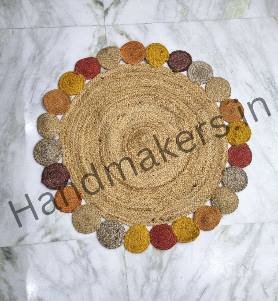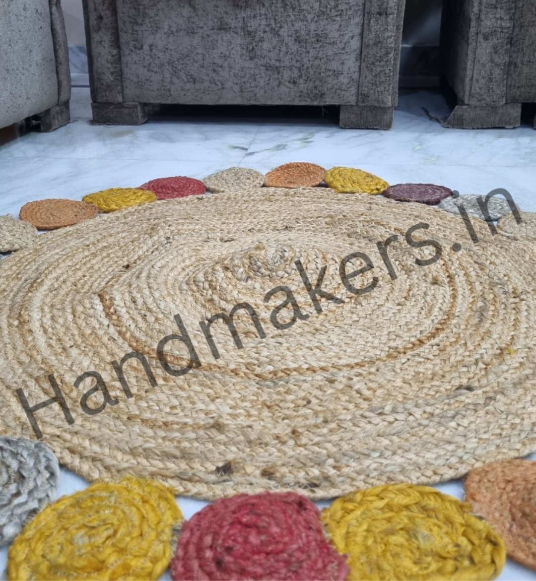 Handmakers Jute and cotton are rug with multiclored outer circle for living room