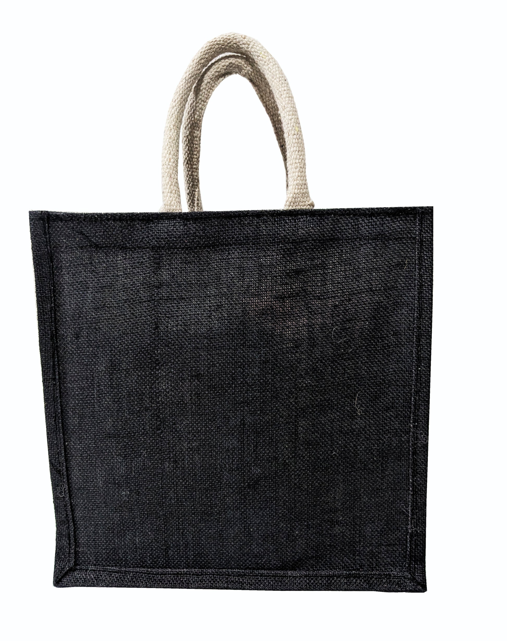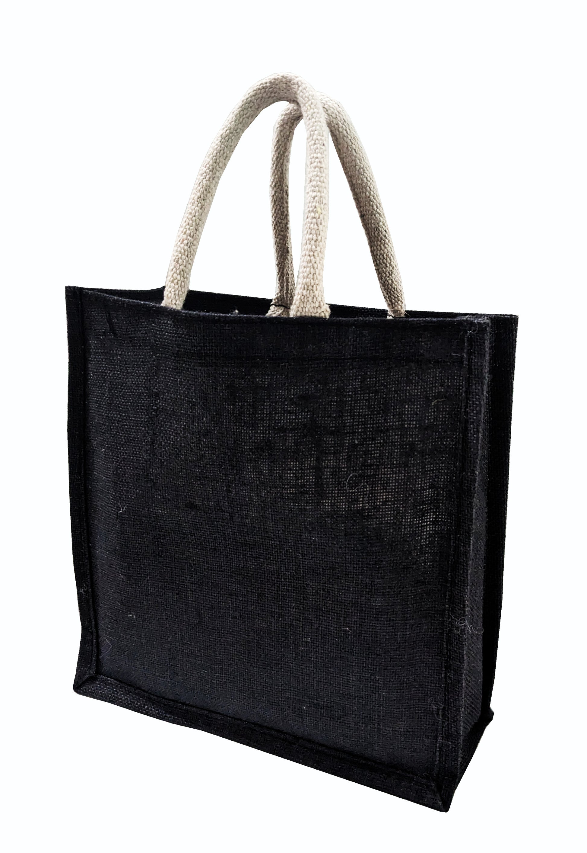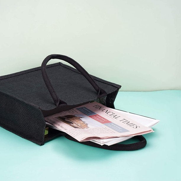 Pack of 6 Black Buralp Jute Tote Bag for Wedding Gift, Anniversary, Engagement