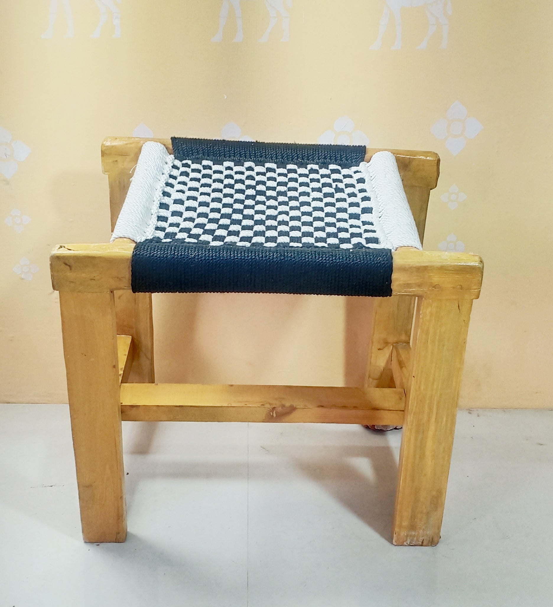 Handmakers Wooden Weaving Black & Beige Chowki
