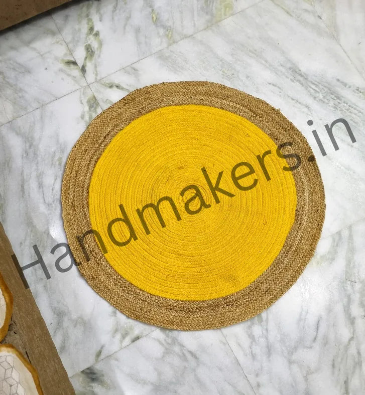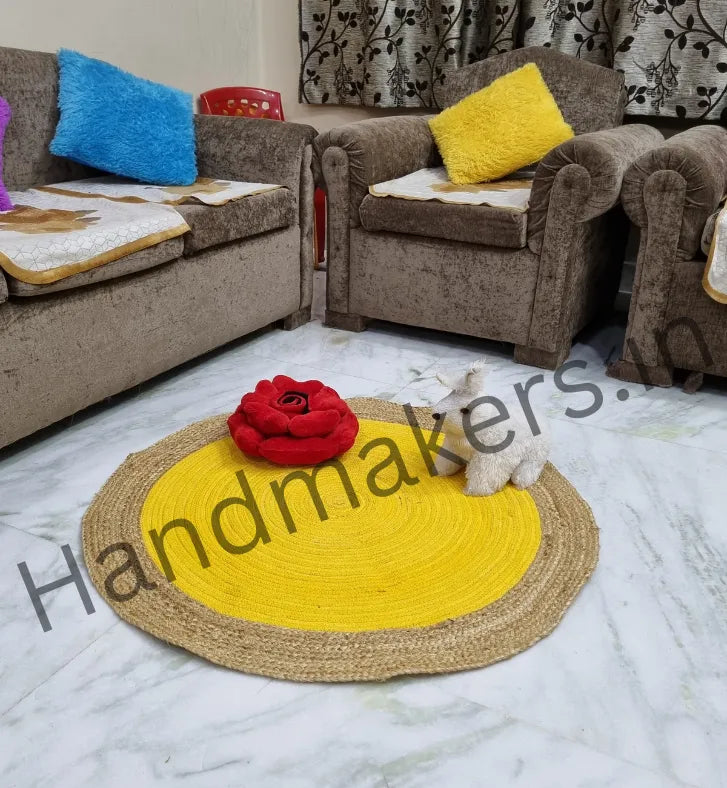 Natural Jute Rugs With Yellow and Beige Strips - 90 CM