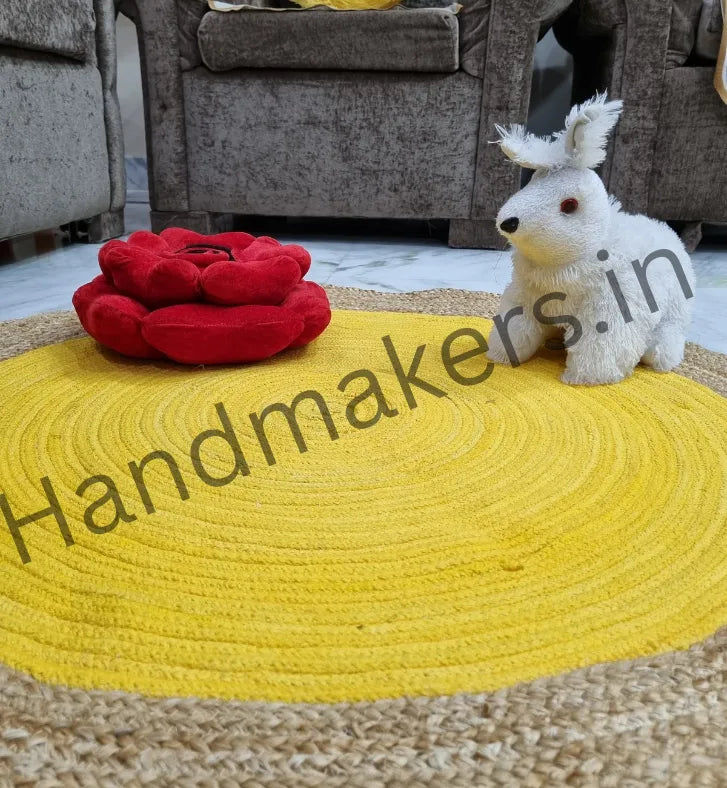 Pure Handmade & Eco- Friendly Yellow & Beige area Jute Rugs Design